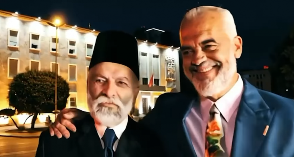 Përmes një videoje në rrjetet sociale, realizuar me inteligjencën artificiale, Rama shfaqet me Ismail Qemalin.
