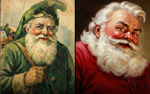 Babagjyshi nuk ka qenë gjithmonë një burrë i veshur me të kuqe. Deri në shekullin XX, Shën Nikolla dhe Father Christmas shpesh paraqiteshin me ngjyra natyrale si jeshile, kafe apo bezhë, ashtu si në ilustrimet e vjetra.