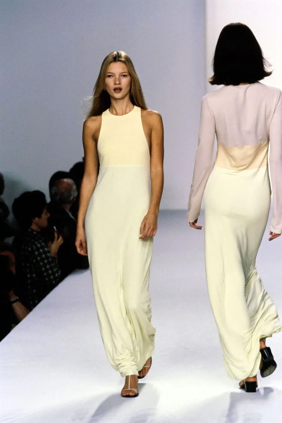 Fustanet në stilin e viteve ’90 kanë qenë një tipar kryesor i pasarelave të fundit. Shembuj përfshijnë stilet e ngushta, të gjata deri në dysheme nga koleksioni Pre-Fall 2026 i Gucci-t, fustanet pa mëngë me kolona nga koleksioni Pranverë/Verë 2026 i Chanel, fustanet me pala dhe jakë të ngushtë të Giorgio Armani -t , dhe sigurisht fustanet me rripa dhe jakë katrore nga Calvin Klein, mbreti i minimalizmit të viteve ’90, marka e të cilit tani drejtohet nga Veronica Leoni. Ndërsa viti i kaluar u dominua nga stili boho me fustane të rrjedhshëm dhe me rrudha, pamjet e ardhshme pranverë/verë pritet të jenë shumë më minimaliste dhe të strukturuara, më të ngjashme me stilin e Gwyneth Paltrow në premierat e saj të filmave midis viteve 1995 dhe 1998.