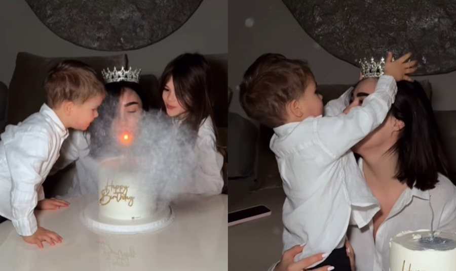 Së fundmi, ajo ka ndarë në Instagram një video të ëmbël, ku shfaqet pranë vajzës Ajka dhe djalit Amen, teksa së bashku fryjnë qirinjtë e tortës.